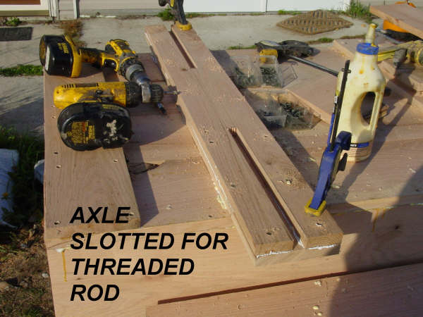 and the axle at the pivot point held in place by deck screws. A coat of grease